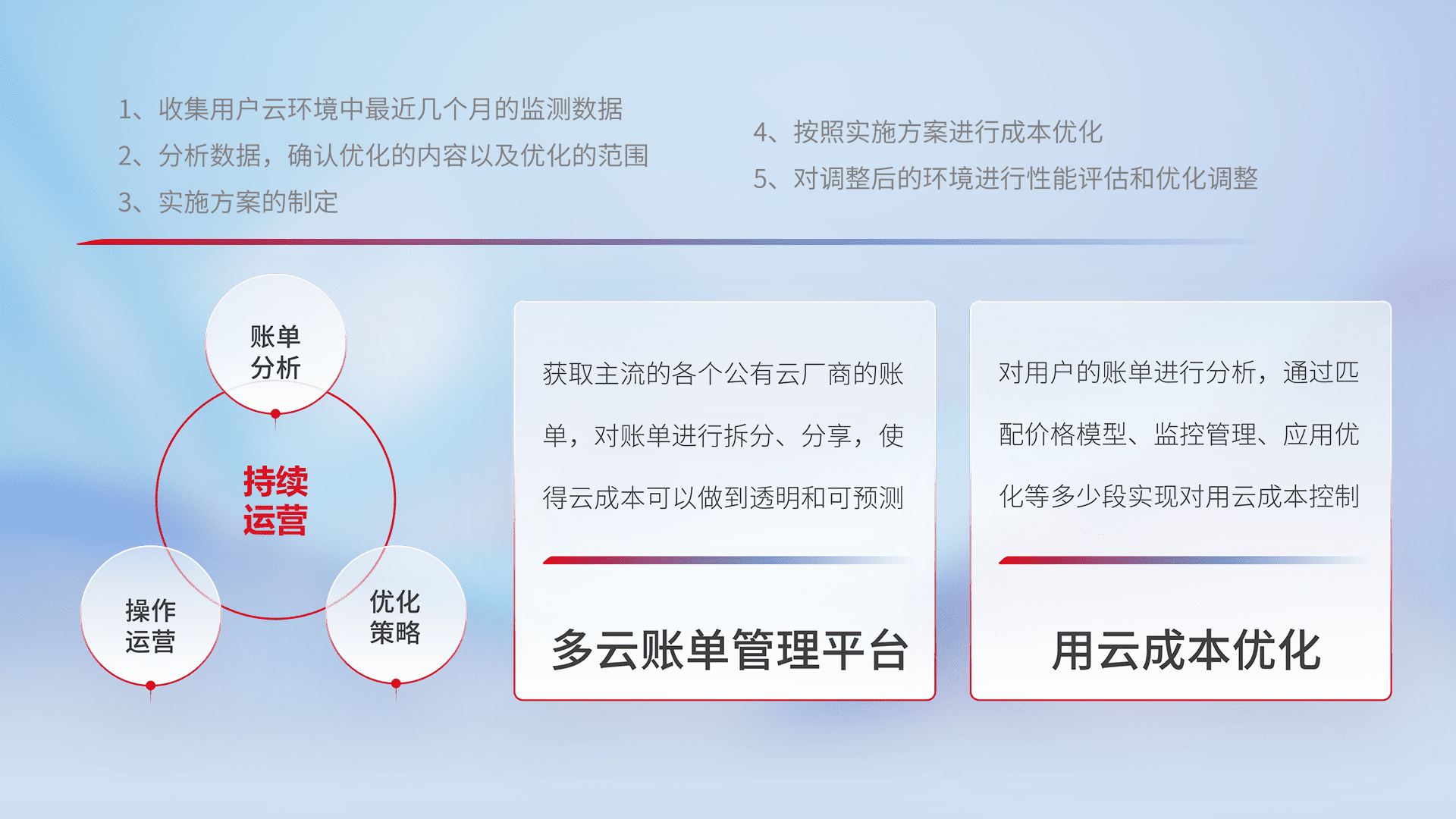 运用智能化工具分析云资源,,提供日常费用可视化工具,,,,自动账单拆分,,,,成本优化云上费用,,,,降本增效。。